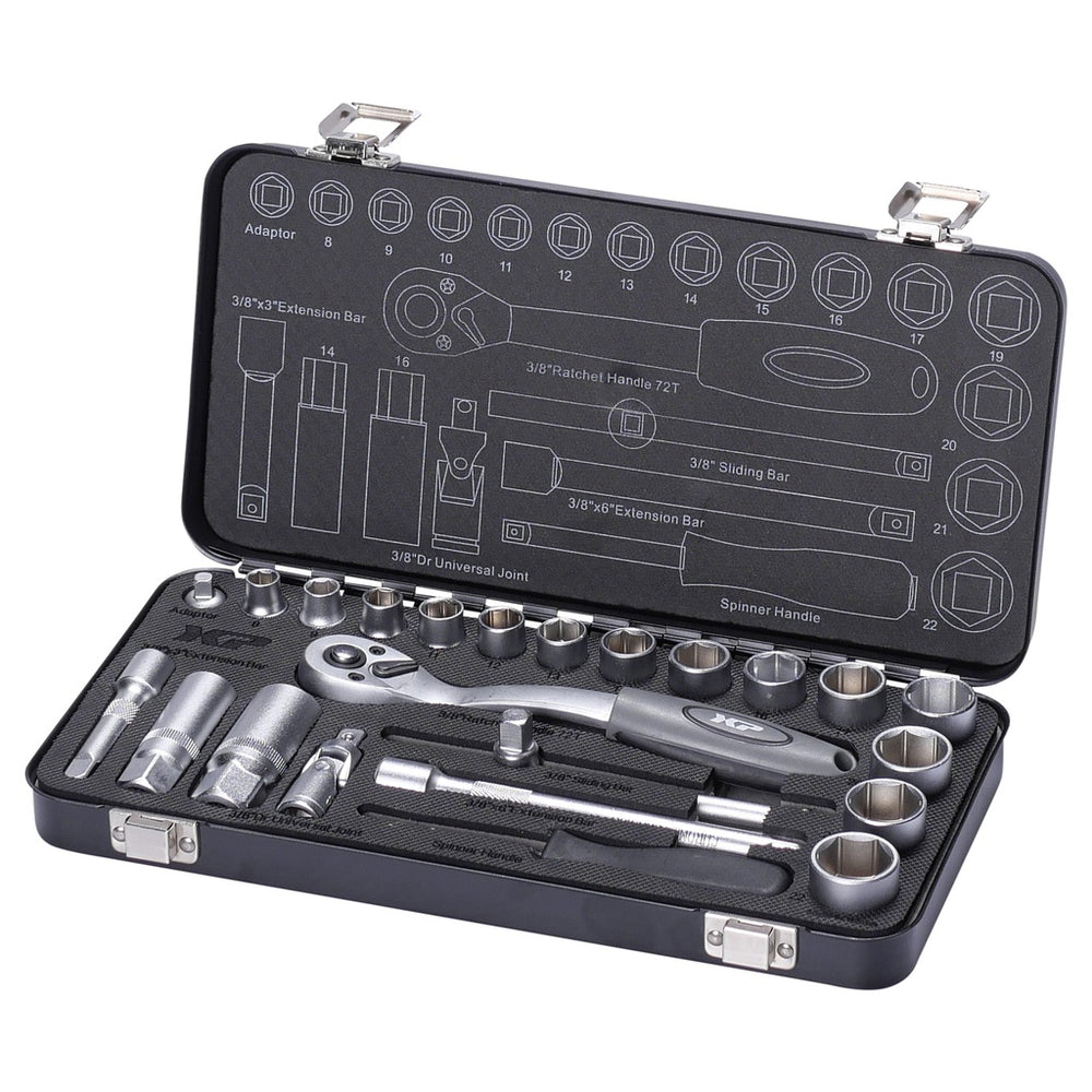 Dit 3/8'' doppenset van XPTools is ontworpen voor optimale toepassing en ideaal voor gebruik binnen en buiten de werkplaats.