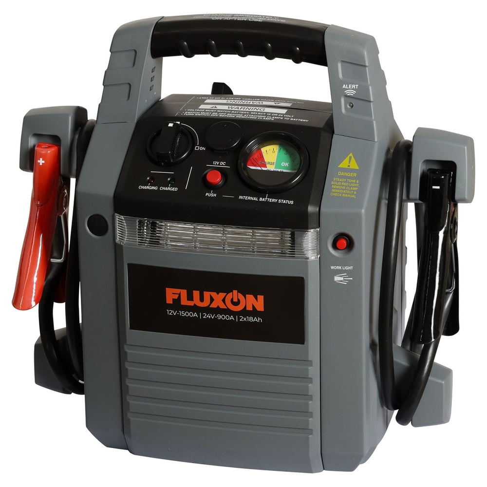 De Fluxon startbooster is een krachtige en betrouwbare oplossing voor het starten van voertuigen met een 12V of 24V accu. Dankzij de dubbele batterijcapaciteit van 2 x 18 Ah is dit model geschikt voor personenwagens, bestelauto’s en lichte vrachtwagens.