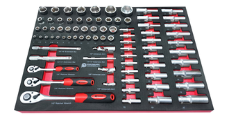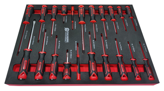 7 Laden, waarvan 6 gevuld: De gereedschapswagen beschikt over 7 robuuste laden, waarvan 6 gevuld zijn met 259 stuks kwalitatief hoogwaardig gereedschap, waaronder chroom-vanadium gereedschap.