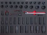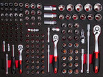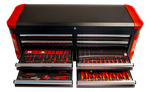 13 Laden, waarvan 9 gevuld: De gereedschapswagen beschikt over 13 ruime laden, waarvan 9 gevuld zijn met hoogwaardige gereedschappen, waaronder chroom-vanadium gereedschap.