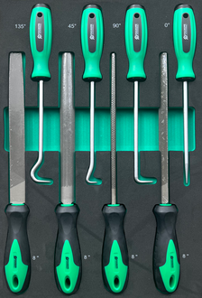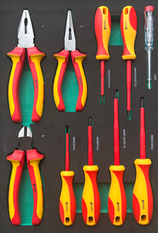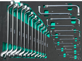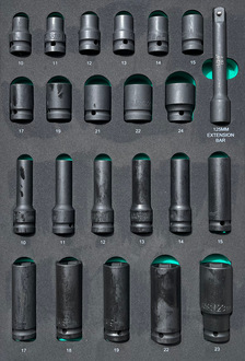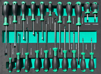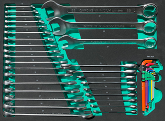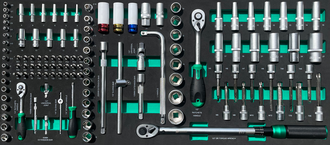 13 Laden, waarvan 11 gevuld: De gereedschapswagen beschikt over 13 robuuste laden, waarvan 11 gevuld zijn met 448 stuks kwalitatief hoogwaardig gereedschap, waaronder chroom-vanadium gereedschap.