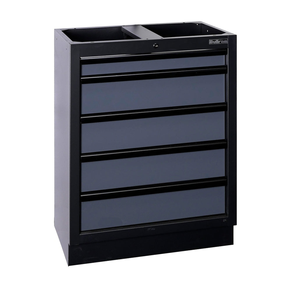 De GC68L5 ladekast biedt een flexibele en efficiënte oplossing voor het organiseren van gereedschap. Met 5 lades (1 kleine, 4 grote) en een modulair ontwerp, is deze kast ideaal voor het samenstellen van je eigen werkplaatsinrichting. Het frame is uitgevoerd in RAL9005 (zwart), de lades in RAL7021 (grijs).