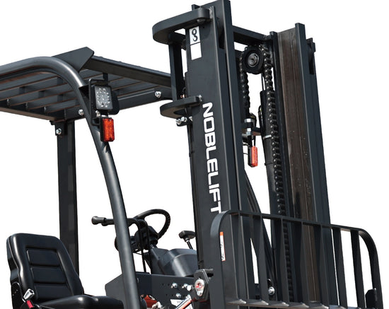 Deze Noblelift heftruck is perfect voor bedrijven die zware pallets en ladingen op hoogte moeten verplaatsen, zowel binnen magazijnen als op buitenterreinen.