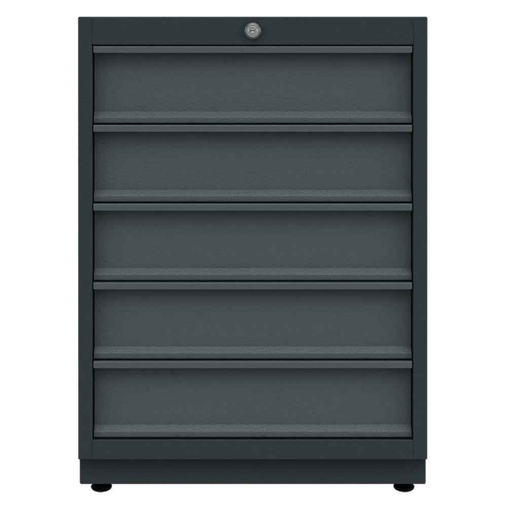 Deze onderkast bestaat uit vijf degelijke lades die volledig uitschuiven en uitgevoerd zijn met kogelgelagerde rails. Alle lades zijn centraal afsluitbaar, dankzij het cilinderslot. Het onderframe is voorzien van stelpoten, zodat de kast makkelijk waterpas geplaatst kan worden. De onderkast is te combineren met andere modules uit de Expert serie en is onderdeel van de volgende modules_
