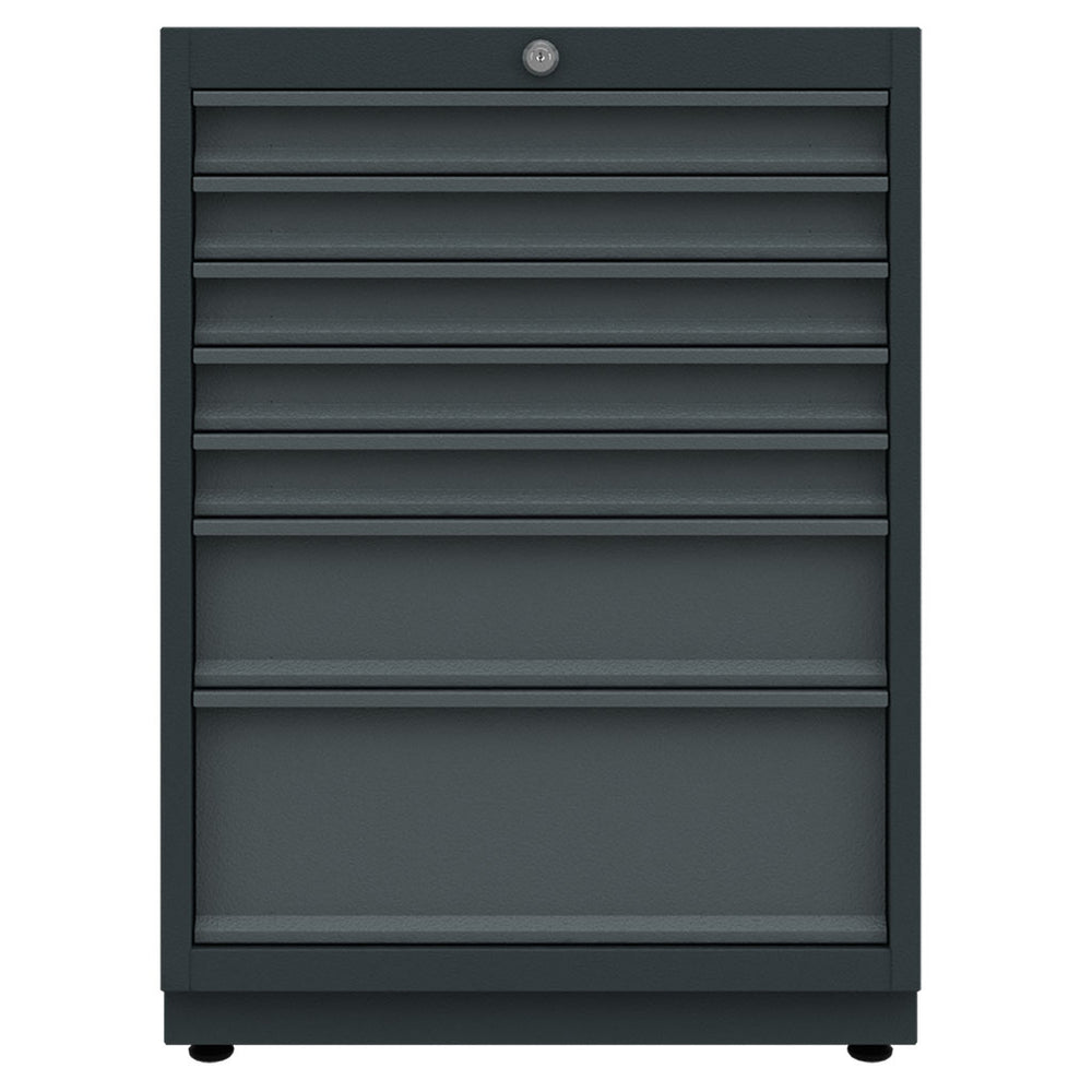 Deze onderkast bestaat uit zeven degelijke lades die volledig uitschuiven en uitgevoerd zijn met kogelgelagerde rails. Alle lades zijn centraal afsluitbaar dankzij het cilinderslot. Het onderframe is voorzien van stelpoten, zodat de kast makkelijk waterpas geplaatst kan worden. De onderkast is onderdeel van de onderstaande werkplaats modules en is te combineren met andere producten uit de Expert serie_