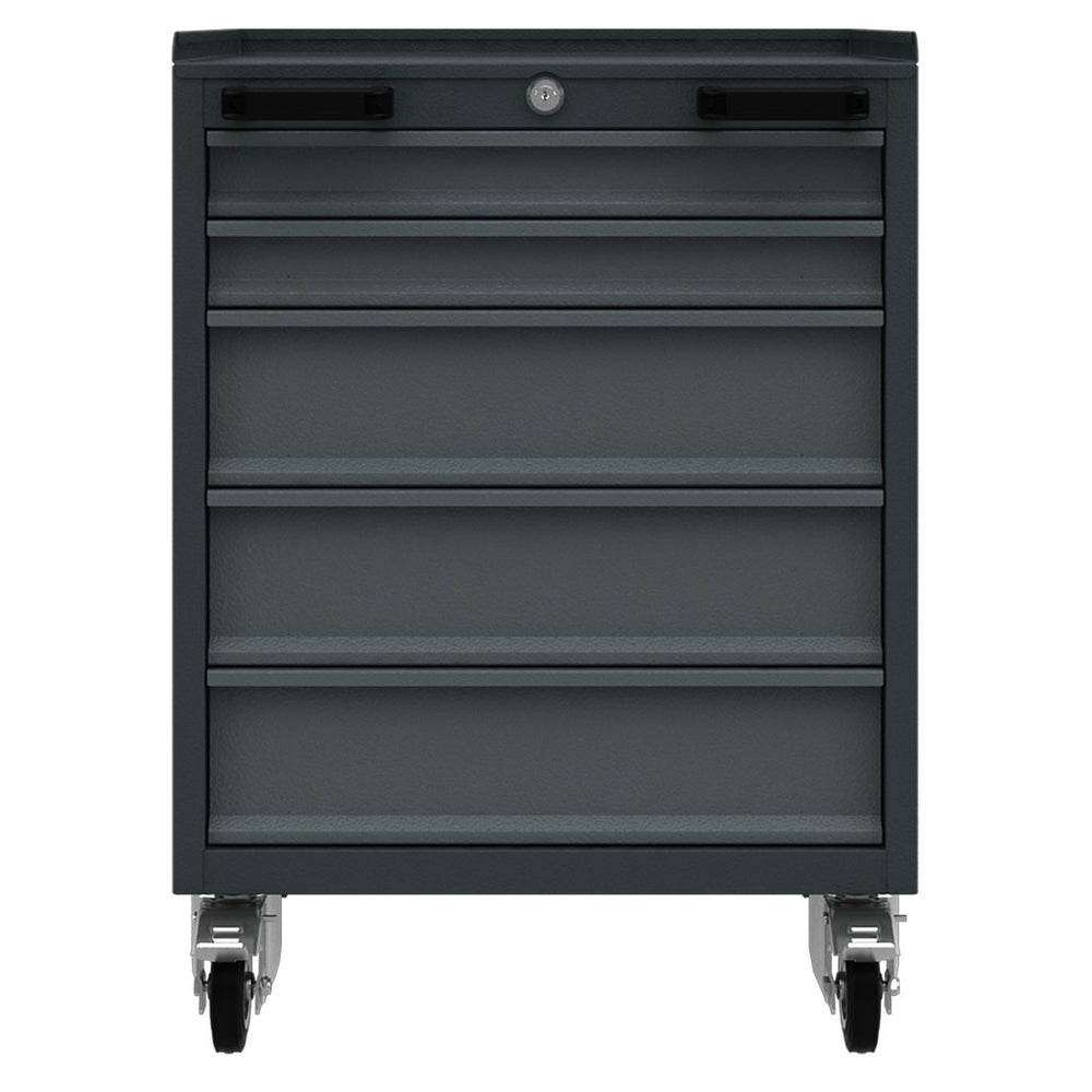 Deze verrijdbare onderkast bestaat uit vijf degelijke lades die volledig uitschuiven en uitgevoerd zijn met kogel gelagerde rails. Alle lades zijn centraal afsluitbaar dankzij het cilinderslot. De verrijdbare onderkast is te combineren met andere modules uit de Expert serie en is onderdeel van de volgende modules_
