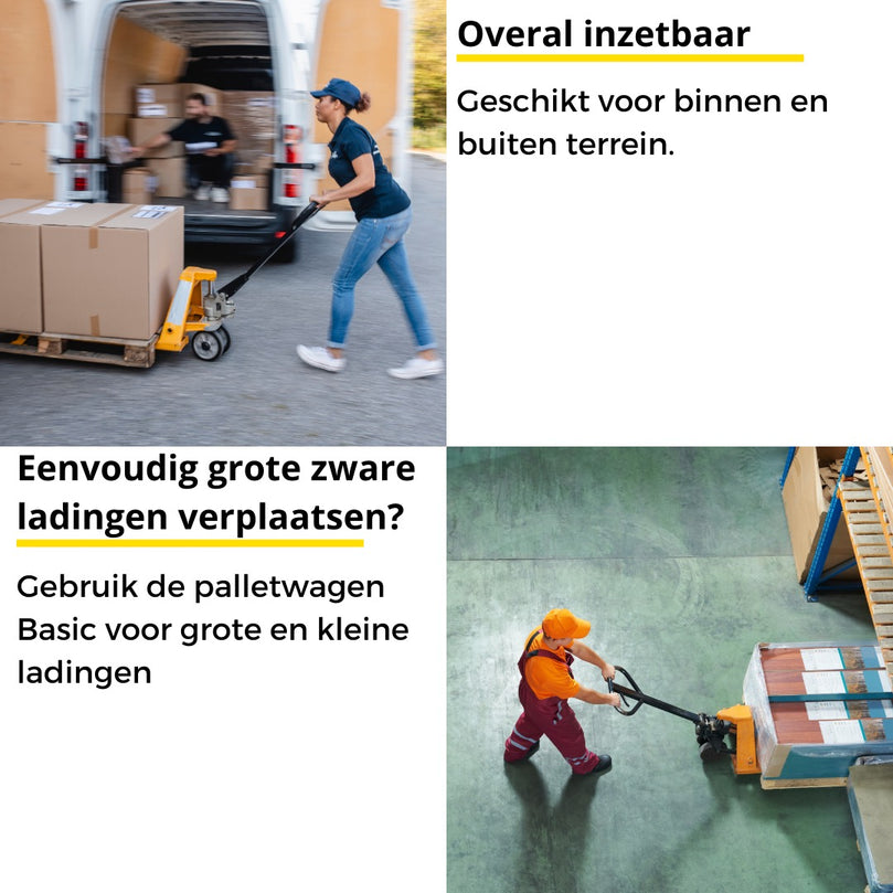 Met een ergonomisch gevormde greep kunt u eenvoudig het heffen, rijden en laten dalen van de palletwagen regelen. Het handvat biedt een gecontroleerde en gedoseerde daalsnelheid, zodat u veilig en efficiënt pallets kunt verplaatsen.
