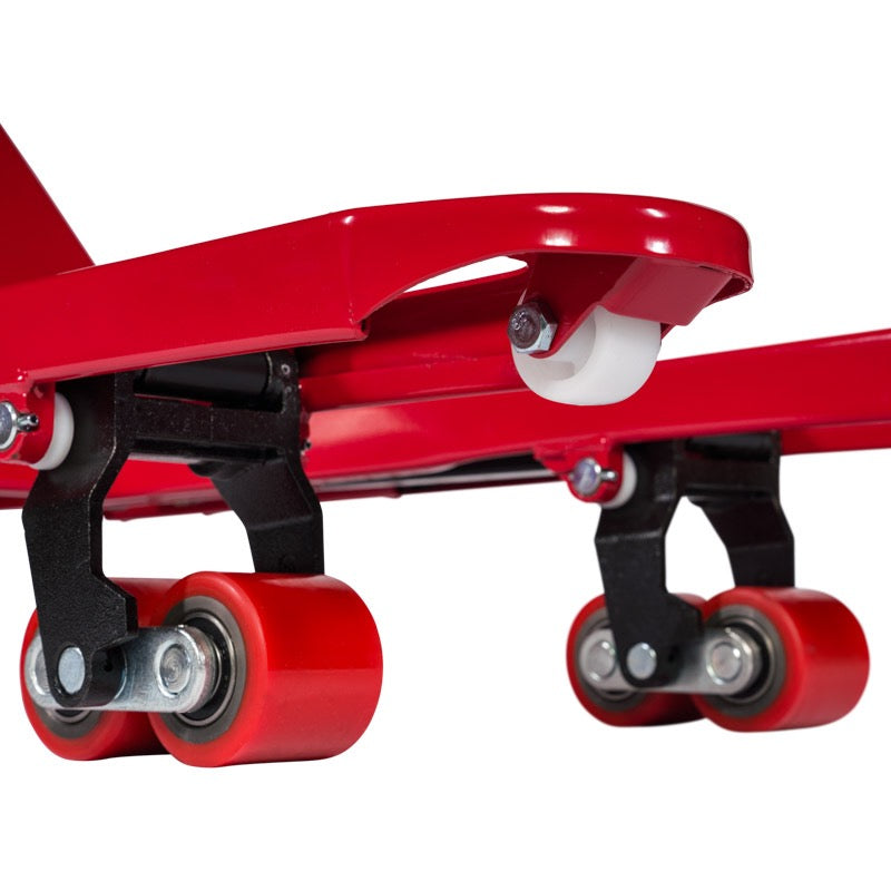 Dankzij de rubberen stuurwielen werkt de Weldon palletwagen geruisloos en met een lage rolweerstand. Dit minimaliseert vloerbeschadiging en zorgt voor een soepele werking. De polyurethaan vorkwielen zijn bestand tegen agressieve stoffen en metaalspanen, en bieden hoge elasticiteit voor een comfortabele werking.