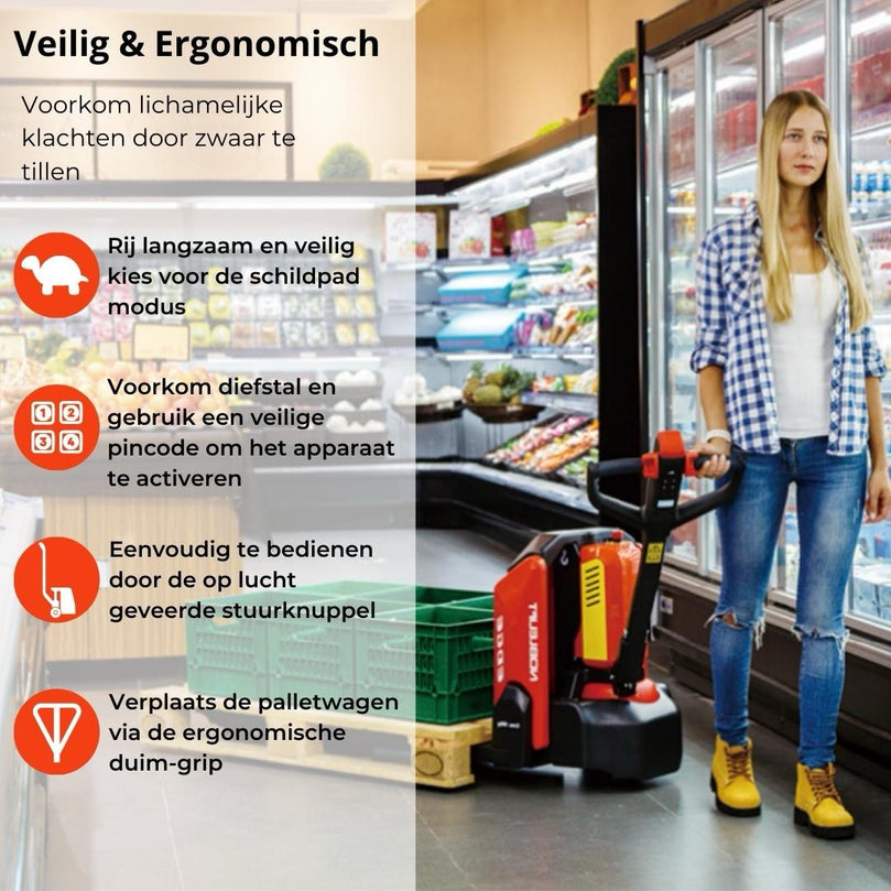 In de retailsector is snelheid en flexibiliteit cruciaal. De elektrische pompwagen PTE15N-EDGE maakt het mogelijk om snel en moeiteloos producten te verplaatsen, zelfs in krappe ruimtes. Dankzij het ergonomische ontwerp blijft de gebruiker comfortabel en vermoeidheid minimaal, wat bijdraagt aan hogere efficiëntie.