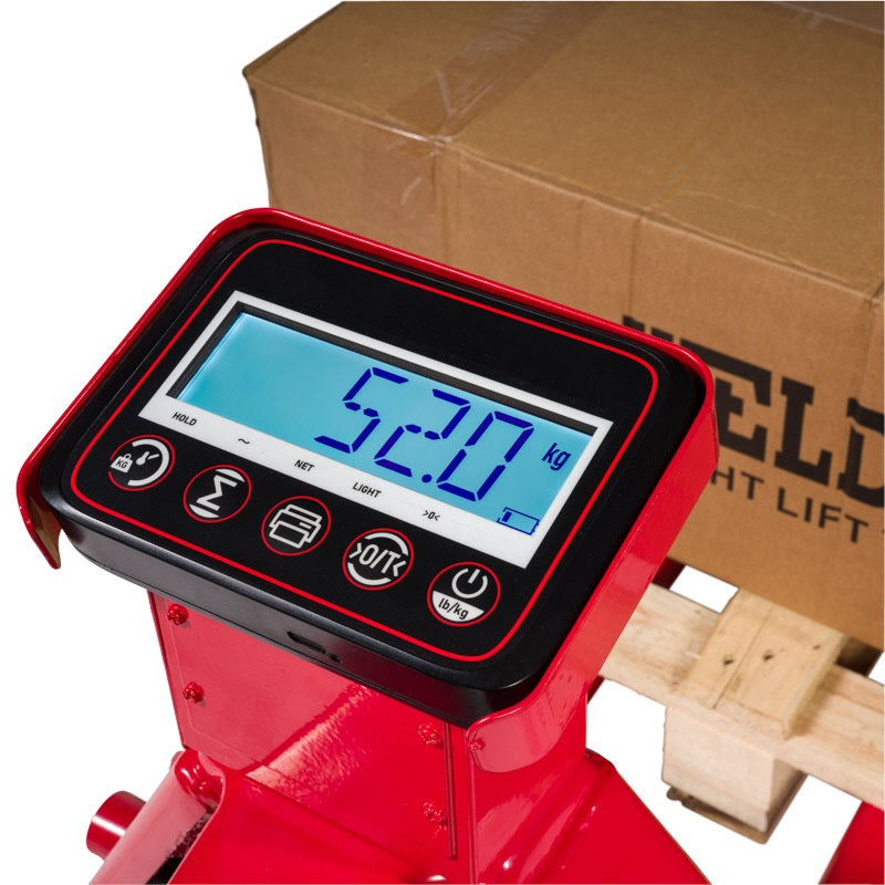 De palletwagen is voorzien van grote functietoetsen die duidelijk “klikken”, zelfs bij het dragen van handschoenen. Bedieningsfuncties zoals tarreren, bruto/netto gewicht en eenheidskeuze (KG/LB) maken het gebruik eenvoudig en intuïtief.