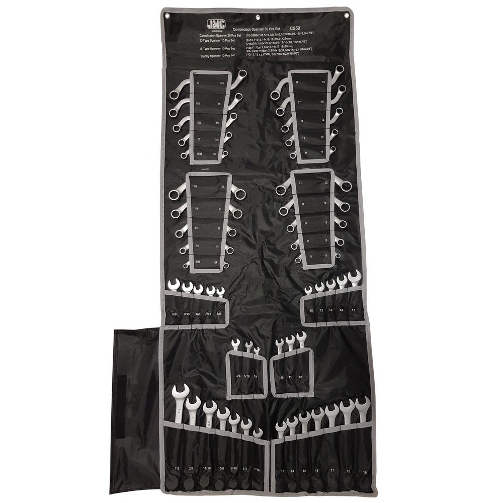 - 5x S-vormige ringsleutel inch = 3/8" x 13/32", 7/16" x 1/2", 9/16" x 19/32", 5/8" x 11/16" en 11/16" x 3/4"