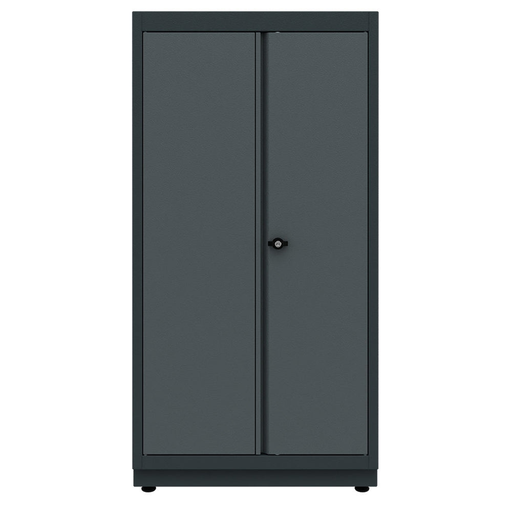 Deze staande kast laag model bestaat uit twee deuren die met behulp van een cilinderslot afsluitbaar zijn, de binnenkant beschikt over twee in hoogte verstelbare schappen. Het onderframe is voorzien van stelpoten, zodat de staande kast makkelijk waterpas geplaatst kan worden. De staande kast is te combineren met andere modules uit de Expert serie en is onderdeel van de volgende modules_