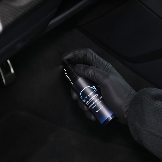 Spray op de vloermatten, sluit alle deuren en zet je auto op recirculatie met de ventilatie aan. Laat dit 15 minuten draaien voor een maximale geurverspreiding in het hele interieur.
