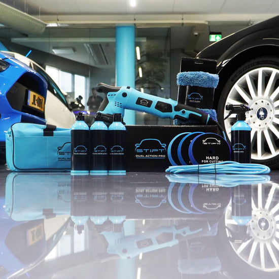 De Stipt Dual Action Polisher Pro Set beschikt over alle producten die ervoor zorgen dat alle krassen en lakdefecten verwijderd worden uit uw autolak en de lak daarna verzegelen en beschermen.