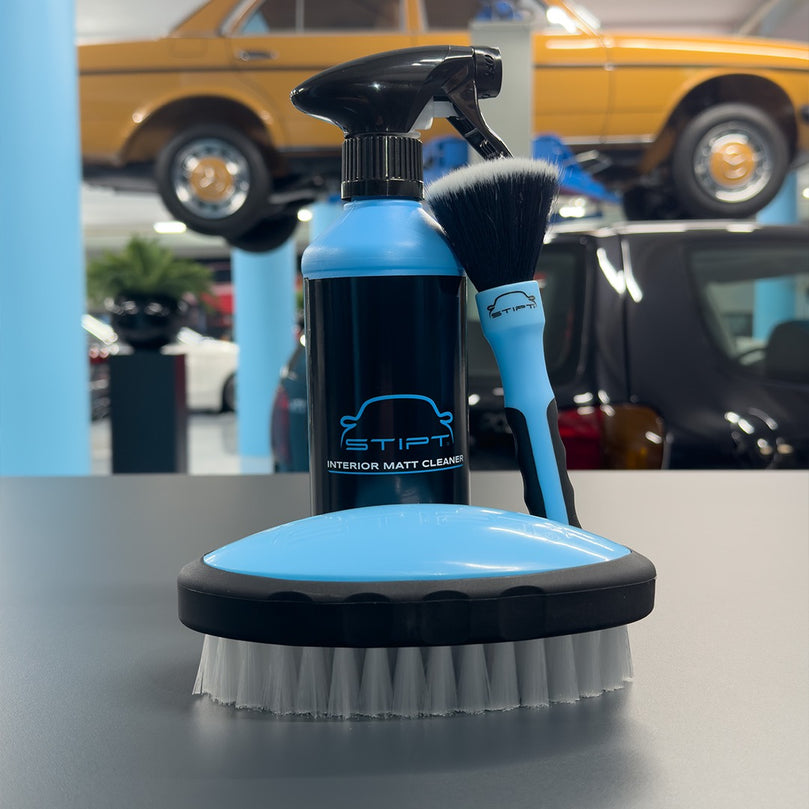 De Stipt Interior Matt Cleaner is een krachtige reiniger voor auto interieurs, bestemd voor leder, stof, skai, en alcantara die een matterend resultaat geeft. Verwijderd moeiteloos vuil, glans en vlekken. De enige interieur mattering op de markt.