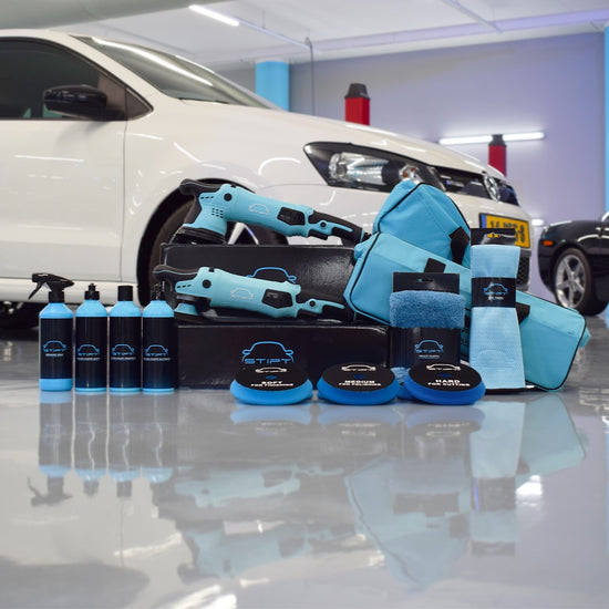 Deze complete set is geschikt als u het lakwerk van A tot Z wil aanpakken. Zo gebruik je de roterende machine om extreme krassen en lakdefecten te verwijderen en de excentrische machine om de auto volledig op glans te brengen en hologrammen te verwijderen.