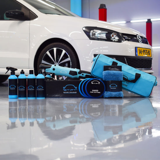 De Stipt Rotary Polisher Set is een volledige samenstelling om je auto professioneel roterend te kunnen polijsten en het lakwerk te kunnen verzegelen. Met dit pakket beschik je over alle mogelijkheden om beschadigingen, diepe krassen en lakdefecten te verwijderen uit uw autolak.