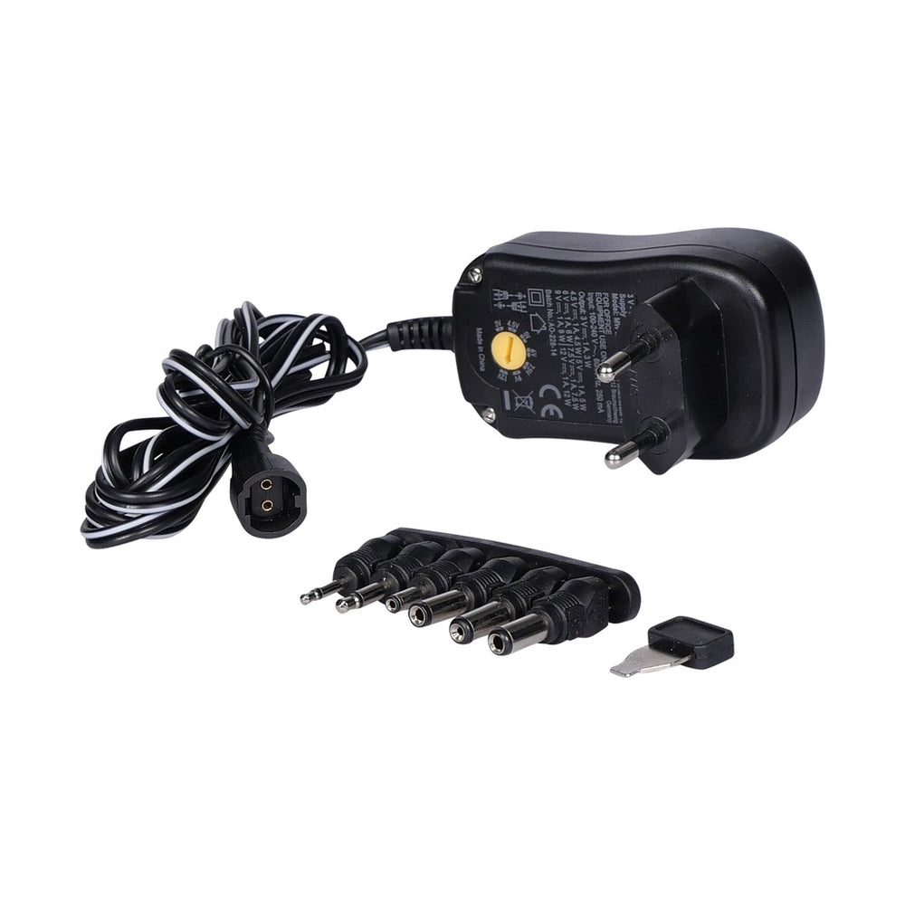 Deze universele AC/DC adapter is ideaal voor het aansluiten van verschillende apparaten op de netvoeding om deze van stroom te voorzien of op te laden. De adapter wordt geleverd inclusief 6 verwisselbare pluggen en is eenvoudig in te stellen op 7 verschillende voltages.